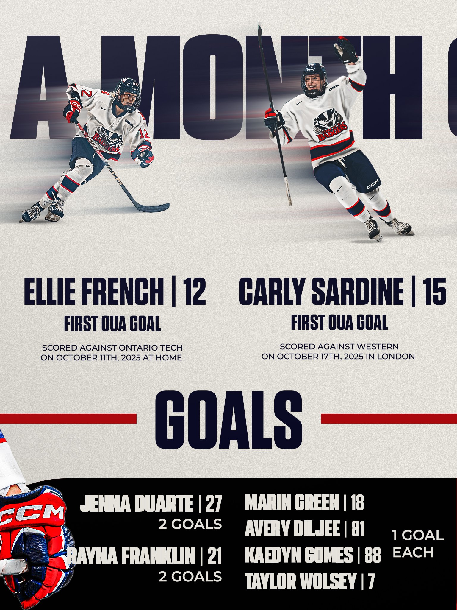I created graphic design elements for the Brock Women’s Hockey social media page, assisting in growing the page to the third most followed hockey account in the OUA amongst both men’s and women’s hockey.